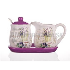 BANQUET LAVENDER 4dSet kanvička na mlieko s cukorničkou 60ZF1082-A Technické parametre produktu: Dĺžka (cm): 18,5 Šírka (cm): 9,3 Výška (cm): 12 Objem (ml): 260 ml - mléčenka, 280 ml - cukornička Materiál: Keramika Farba: farba fialovo-biela s dekorom Lavender Hmotnosť netto (kg): 0,769 Umývačka: Áno - ale pre zachovanie dokonalého vzhľadu odporúčame umývať ručne. ilustračné foto Popis tovaru je spravidla možné nájsť tiež na stránkach internetových obchodov