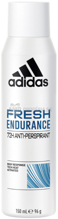 Adidas Fresh Endurance 72h dámsky antiperspirant v spreji (150 ml) je vybavený technológiou Smart Body Response, ktorá sa prispôsobuje telu – osviežujúca vôňa sa uvoľňuje v reakcii na zvýšenú telesnú teplotu a potenie, čím poskytuje spoľahlivú ochranu až na 72 hodín.