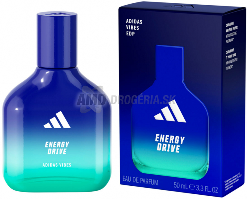 Adidas Vibes Energy Drive je pánska parfumovaná voda, ktorá je navrhnutá tak, aby priniesla revitalizačnú energiu a pozitívnu náladu. Tento aromaticko-citrusový parfum obsahuje zaujímavú kombináciu kardamónu a ružového korenia, ktoré mu dodávajú unikátny, svieži a stimulujúci charakter.