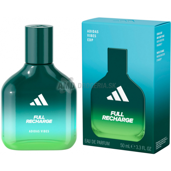 Adidas Vibes Full Recharge je pánska parfumovaná voda, ktorá prináša pocit sviežosti, pohody a spojenia s prírodou. Tento fougere aromatický parfum je ideálny pre mužov, ktorí hľadajú osviežujúcu vôňu s nádychom prírody a vitality.
