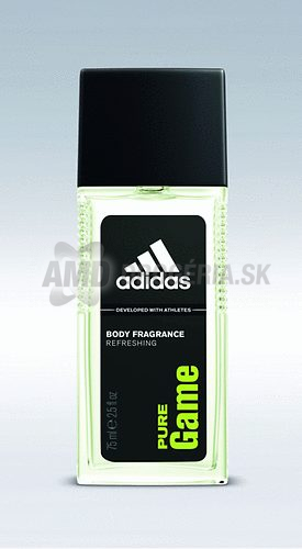 Tato mužná vôňa spája jej nositeľov, vášnivých futbalistov – fanúšikov aj hráčov z celého sveta. A to dokazuje, že v tímovej práci nie je nič nemožné. Impossible is Nothing.Adidas sa inšpiroval bohatou rozmanitosťou a silou Juhoafrickej republiky. Vzdal hold tejto hosťujúcej zemi osobitým podpisom vône Pure Game, ktorá je výsledkom harmonického spojenia prírodných ingrediencií nachádzajúcich sa v rozmanitej krajine Juhoafrickej republiky, známej ako Rainbow Nation.