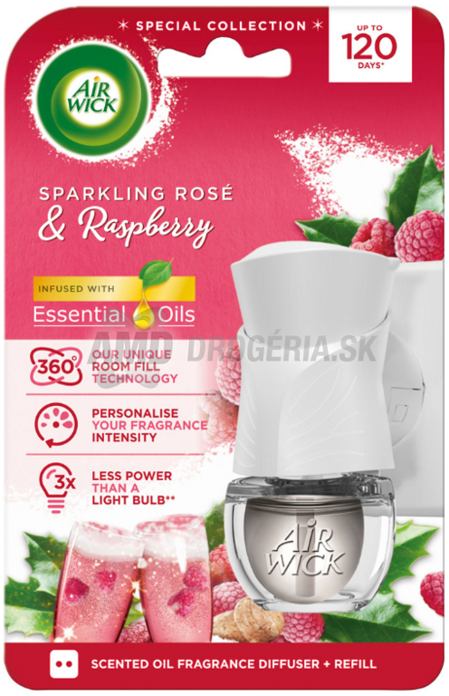 AIR WICK ELEKTRICKÝ OSVIEŽOVAČ VZDUCHU STROJČEK A NÁPLŇ SPARKLING ROSÉ & RASPBERRY 19ML