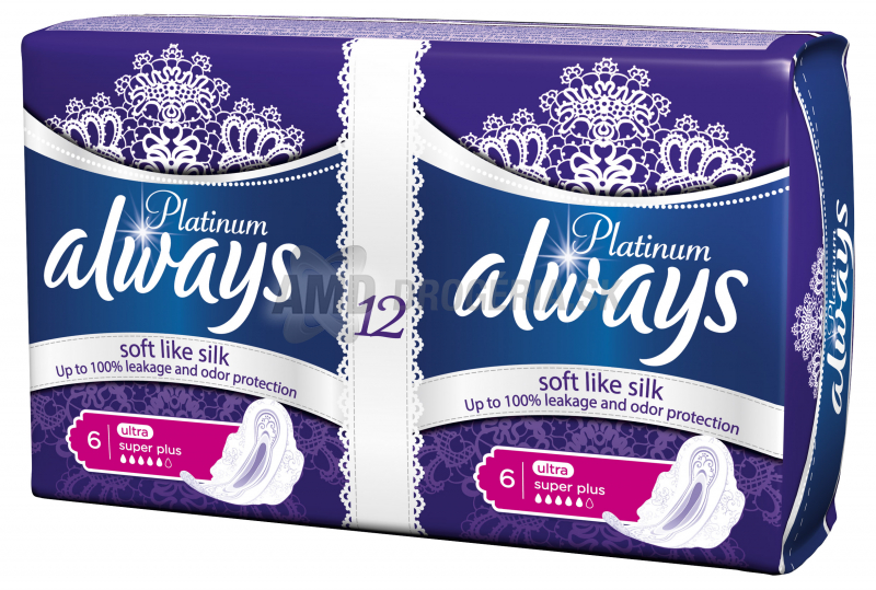 Vyskúšajte nové vložky kolekcie Always Platinum Ultra Super Plus, ktoré Vám umožnia nosiť odvážne oblečenie aj počas menštruácie. Povrch vložky je hebký, preto Vám zabezpečia príjemné a jemné používanie.