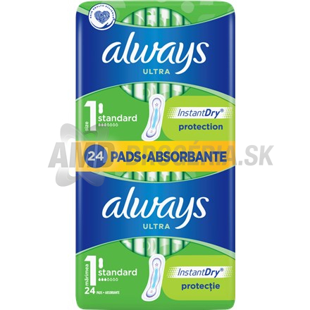 Super absorpčné jadro so systémom InstantDry absorbuje tekutinu za pár sekúnd a udržuje ju preč od pokožky, Technológia na neutralizáciu zápachu zadrží zápach, takže vy sa budete počas menštruácie cítiť sviežo a čisto, Systém Flex&Fit zaistí, že vaša menštruačná vložka zostane na mieste a prispôsobí sa pohybom vášho tela, Vďaka technológii SecureGuard získate dodatočný pocit istoty s gélom uzatvárajúcim tekutiny, pretože ten tekutinu uzamkne vnútri vložky, Menštruačné vložky Always Ultra sú dermatologicky testované a ich jemnosť k pokožke je overená