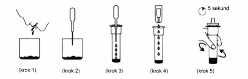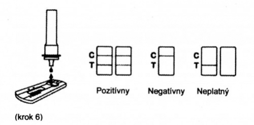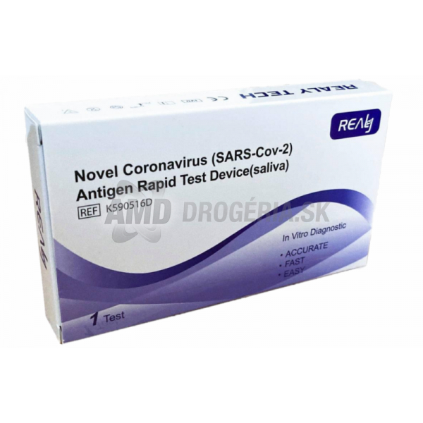 Diagnostický rýchlotest na kvalitatívnu detekciu koronavírusových antigénov v ľudských slinách pomocou imunochromatografickej metódy.