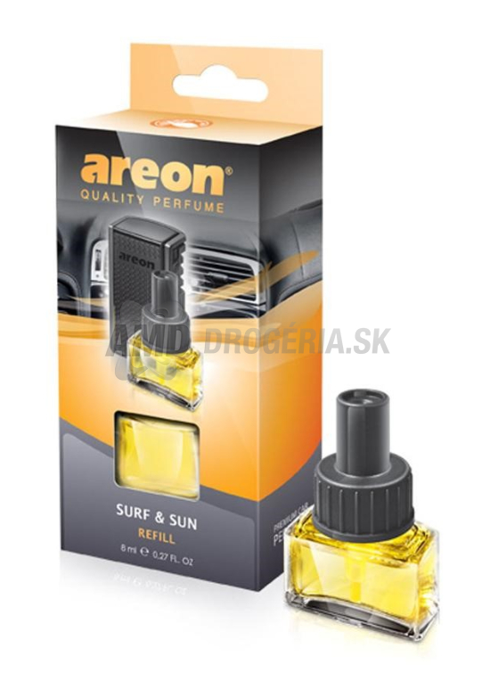 Náplň do osviežovača vzduchu Areon Car – Surf & Sun, 8 ml je náhradná náplň určená do osviežovačov vzduchu Areon Car, ktoré sa umiestňujú na ventilačnú mriežku v aute. Tento produkt ponúka sviežu a energickú vôňu Surf & Sun, ktorá okamžite premení interiér vášho vozidla a vytvorí príjemnú atmosféru. Vďaka koncentrovanému zloženiu zabezpečuje dlhodobý a intenzívny vonný efekt, pričom intenzitu vône je možné jednoducho regulovať podľa potreby.