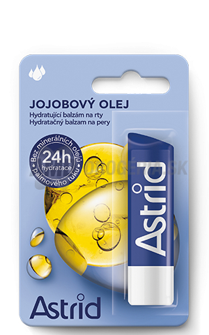 Astrid Jojobový olej je hydratačný balzam na pery obohatený jojobovým olejom a E. Poskytuje unikátnu batériu, ktorá obsahuje základné potraviny a antioxidanty. Jeho textúra je ideálna pre vytvorenie ochrannej bariéry pre suché a popraskané pery, ktoré uzamyká vlhkosť a zanecháva ich jemné a hladké.