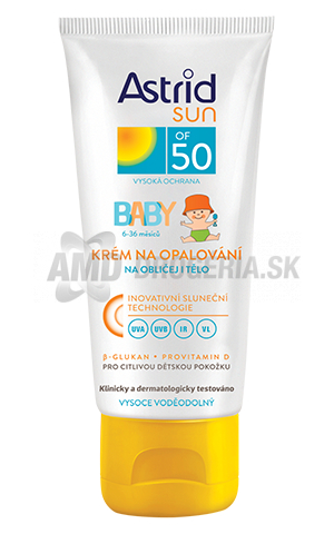 ASTRID SUN Detský krém na opaľovanie OF 50 s inovatívnou slnečné technológií (UVA / UVB / IR * / VL *) poskytuje pokožke širokospektrálny fotostabilná ochranu pred škodlivými vplyvmi UV a infračerveného žiarenia a viditeľného svetla.
