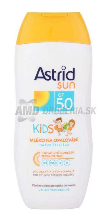 Doprajte vašim deťom bezpečný pobyt na slnku s mliekom na opaľovanie Astrid. Telové mlieko poskytuje detskej citlivej pokožke ochranu počas slnečných dní a zároveň sa o ňu stará. Jedinečné zloženie je obohatené o D-panthenol a multivitamínový komplex (vitamíny A, E, F). Jemná vodeodolná textúra sa ľahko rozotiera a znižuje nutnosť opakovanie nanášania prípravku po každom kúpaní. Mlieko na opaľovanie udrží pokožku dieťaťa hebkú, dokonale hydratovanú a zdravú.