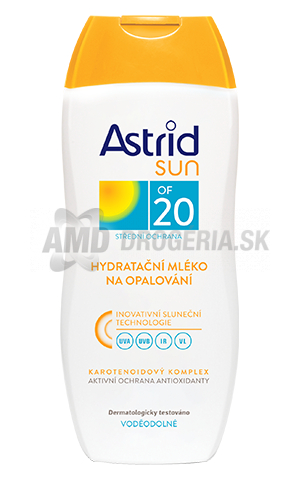 ASTRID SUN Hydratačné mlieko na opaľovanie OF 20 s inovatívnou slnečné technológií (UVA / UVB / IR * / VL *) poskytuje pokožke širokospektrálny fotostabilná ochranu pred škodlivými vplyvmi UV a infračerveného žiarenia a viditeľného svetla.