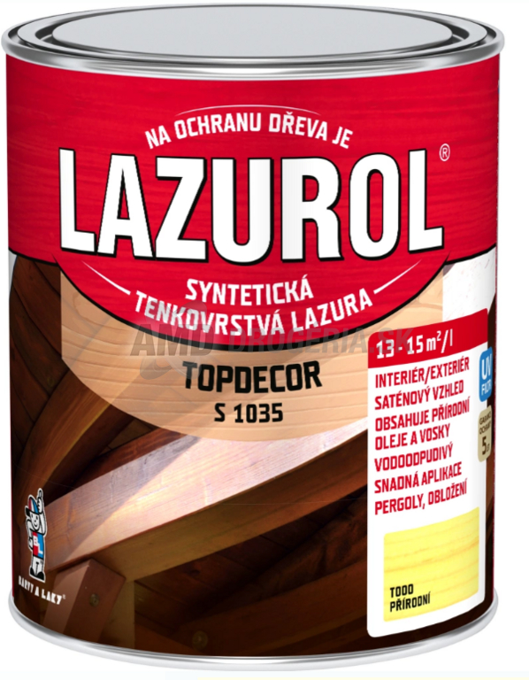 Je lak syntetický lazúrovací tenkovrstvový s prídavkom zmesi špeciálnych voskov a olejov. Lazurol Topdecor je určený k ochranným lazúrovacím náterom mäkkého i tvrdého dreva, vystaveného poveternostným vplyvom ik náterom v interiéroch. Hlboko preniká do štruktúry dreva a výrazne zdôrazní štruktúru dreva. Poskytuje dlhodobú ochranu dreva proti vode a UV žiareniu. Nátery sú stálofarebné, ľahko obnoviteľné a nepraskajú.