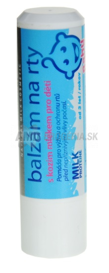 Výživa a ochrana pier pred nepriaznivými vplyvmi počasia pre deti.Balzam na pery s kozím mliekom zvláčňuje a zjemňuje vysušenú pokožku, príjemne vonia a hydratuje.Vhodné pre deti od 3 rokov.
