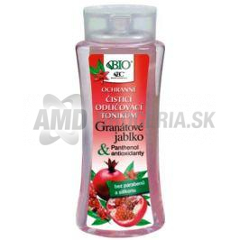 Bio - čistiace a odličovacie pleťové tonikum so šťavou granátových jabĺk pre všetky typy pleti je určené ku konečnému hĺbkovému vyčistenie po použití pleťového mlieka. Tonikum je jemné, nedráždivé, neobsahuje lieh a je doplnené o upokojujúci alantoín, ochranný hydrokreatin ao regeneračný panthenol.