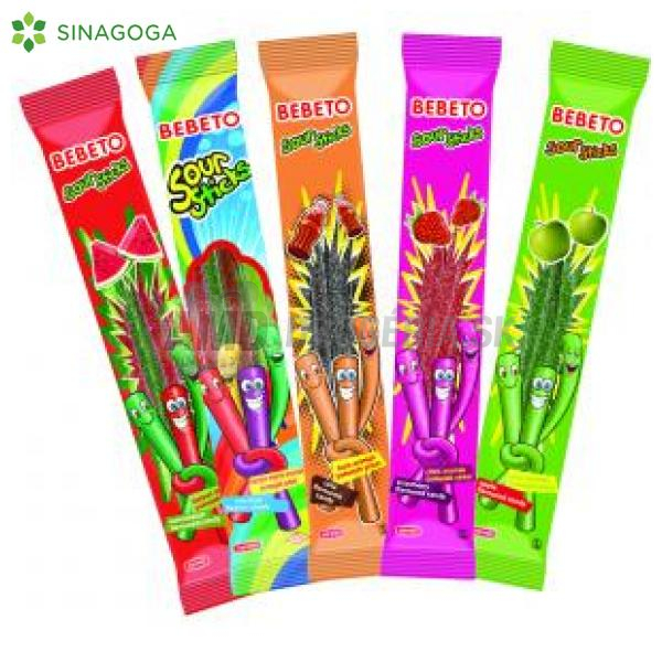 Kyslá cukrovinky s jahodovou príchuti. Zloženie: Cukor, glukózový sirup, pšeničná múka, palmový olej, kyselina jablčná, koncentrát (jablčnej šťavy), regulátor kyslosti (E330), príchuť, farbivo (anthokyany), emulgátory (E471)