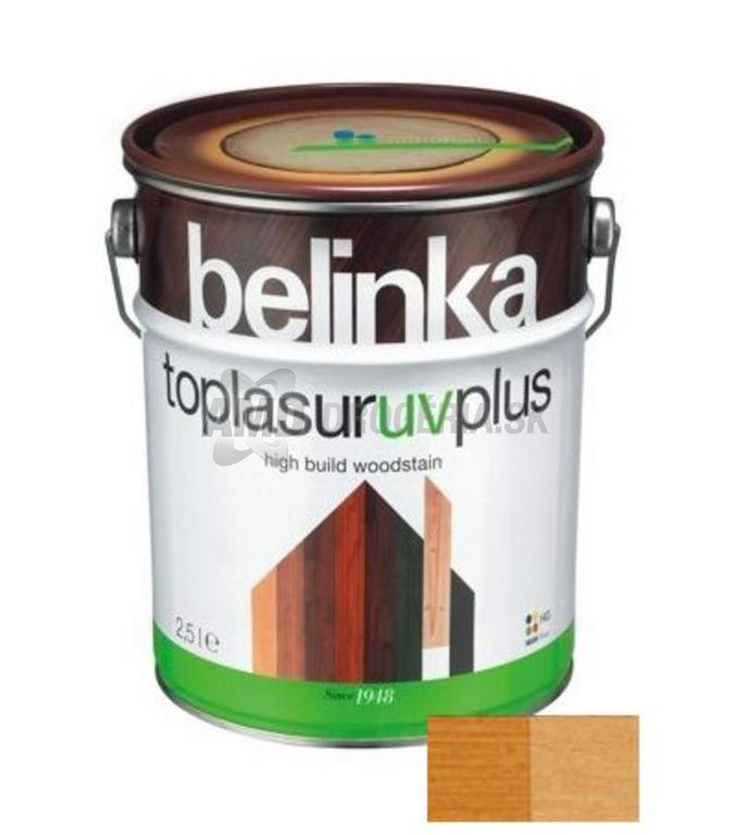 Belinka Toplasur je lak vhodný pre hrubovrstvové nátery, ktorý má všetky dobré vlastnosti klasických lazúr. Je natoľko dokonalý, že znamená nový krok vpred v oblasti dlhodobej ochrany dreva. Belinka Toplasur je hustejšia, vytvára plnší náter, obsahuje špeciálne UV filtre a látky odolné voči vode, preto je zvlášť vhodná na ochranu dreva, ktoré je vystavené náročným vplyvom počasia.