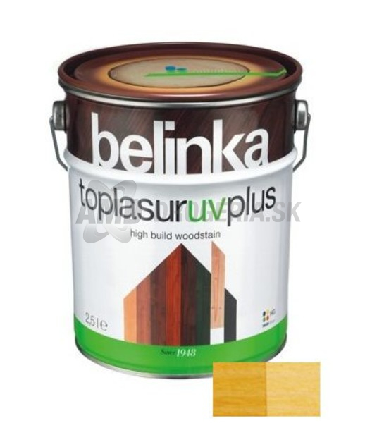 Belinka Toplasur je lak vhodný pre hrubovrstvové nátery, ktorý má všetky dobré vlastnosti klasických lazúr. Je natoľko dokonalý, že znamená nový krok vpred v oblasti dlhodobej ochrany dreva. Belinka Toplasur je hustejšia, vytvára plnší náter, obsahuje špeciálne UV filtre a látky odolné voči vode, preto je zvlášť vhodná na ochranu dreva, ktoré je vystavené náročným vplyvom počasia.