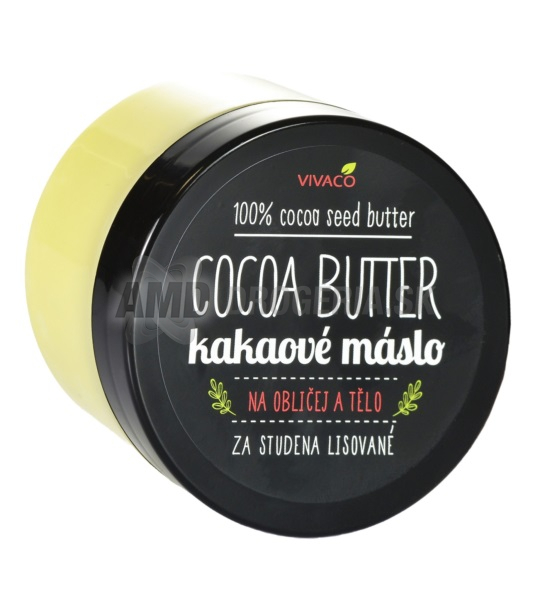 Kakaové maslo vzniknuté lisovaním pražených kakaových bôbov, dokonale stará o pokožku a má ľahkú konzistenciu. Zmäkčuje, hydratuje a regeneruje pokožku, pôsobí preventívne proti UV žiareniu, zrýchľuje proces opaľovanie, zlepšuje farbu pokožky. Je doporučované na ošetrenie ekzémov, spálenín, odrenín, suchej kože a k potlačeniu svrbenie u lupienky. Dokonale sa hodí pre starostlivosť o vysušené a popraskané pery, dlane a chodidlá. Vhodné pre masáže a v období tehotenstva odporúčame proti striám.