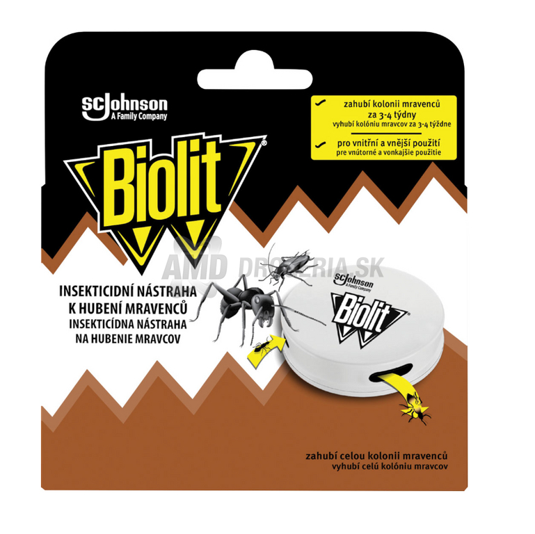 Táto nástraha na mravce Biolit umožňuje efektívnu kontrolu populácie mravcov. Je navrhnutá tak, aby robotnícke mravce odniesli nástrahu do hniezda a zabezpečili úplnú likvidáciu celého mraveniska, vrátane lariev a kráľovnej. Očakáva sa, že kolónia mravcov bude vyhubená do 3 až 4 týždňov od umiestnenia nástrahy. Produkt je vhodný na použitie vo vnútorných priestoroch a aj vonku na terasách a balkónoch.