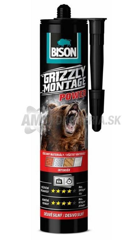 - Bison GRIZZLY MONTAGE POWER WHITE je biele, rýchloschnúce a mimoriadne kvalitné montážne lepidlo