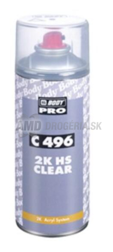 Dvojzložkový akrylátový lak 496 HS je priehľadný a má vysoký lesk. Vďaka svojej vysoko kvalitnej formulácii, excelentnej rozliatelnosti a vysokému lesku sa tento výrobok často využíva na čiastočné alebo kompletné lakovanie karosérií vozidiel. Na miešanie sa používa v pomere 2:1 s tužidlom 720 NORMAL (#720), 722 FAST - rýchle (#722) alebo 727 POLAR (#727). Použitím tužidla BODY HARDENER 722 alebo 727 POLAR sa čas vytvrdzovania zredukuje na 20 minút pri teplote @ 60ºC. Po vysušení v lakovacom boxe je diel pripravený na montáž, drobné úpravy a leštenie už po 10 minútach.