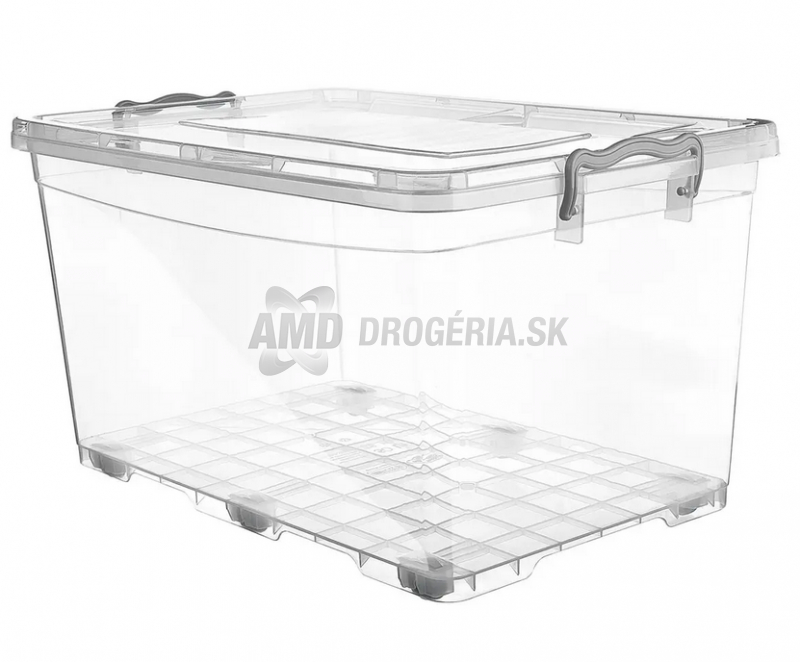 Tento nízky priehľadný plastový box s objemom 50 l je univerzálnym pomocníkom do domácnosti, dielne či na terasu – ideálny na hračky, stolové hry, oblečenie, lôžkoviny, upratovacie potreby alebo náradie.Vyrobený z pevného recyklovaného PP plastu, disponuje praktickými kolieskami na spodku pre ľahké presúvanie a viečkom s dvoma pevnými klipmi pre bezpečné uzatvorenie.Je stohovateľný a ponúka motýlie veko na otváranie z dvoch strán pre jednoduchší prístup k obsahu.