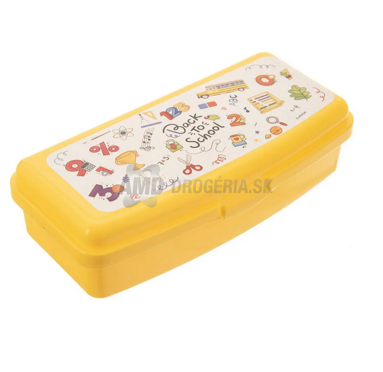 Veselý desiatový box v žltej farbe je ideálny na uloženie desiaty do školy, škôlky, na výlet, krúžok či dovolenku. Vďaka dĺžke 20,5 cm sa doň pohodlne zmestí celý rožok, banán alebo iné obľúbené dobroty.Box je vyrobený z kvalitného PP plastu a uzatvára sa jednoducho pomocou klipu. Deti zaujme milá potlač na viečku, vďaka ktorej bude každá desiata ešte veselšia. Okrem jedla ho môžete využiť aj na uloženie drobností alebo písacích potrieb.Je odolný voči teplotám od -25 °C do +95 °C. Po použití ho stačí umyť v teplej vode so saponátom, opláchnuť a osušiť. Vhodné pre deti od 3 rokov.