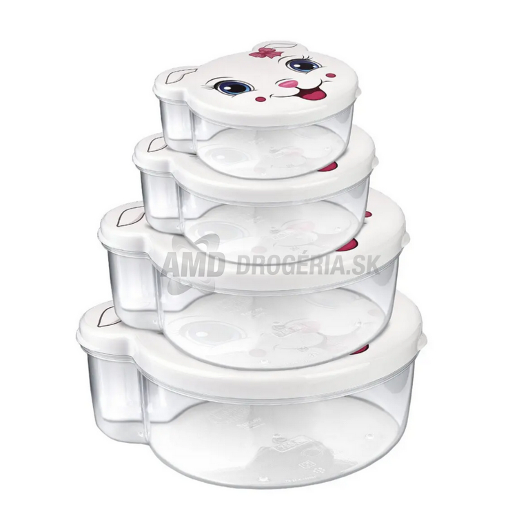 Krásna sada štyroch boxov poteší malých aj veľkých stravníkov. Vyrobené sú z kvalitného plastu a skvele sa hodia na školské desiaty, raňajky na cestách či obedy do práce.Všetky boxy zdobí originálny motív roztomilej bielej mačky, ktorý sa opakuje na každej nádobe. Sada obsahuje štyri rôzne veľkosti – najmenší box má objem 200 ml, stredný 300 ml, väčší 500 ml a najväčší 750 ml.Odporúčaná maximálna teplota použitia je +95 °C. Pred ohrevom v mikrovlnnej rúre nezabudnite odobrať viečko.