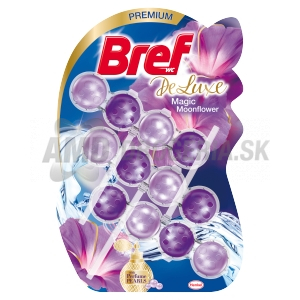 Bref Deluxe Moonflower WC blok s parfumovanými perličkami: 1) Prémiový parfum dodáva kúpeľni dlhotrvajúcu sviežu a elegantnú vôňu 2) Ochrana pred vodným kameňom zabraňuje tvorbe vodného kameňa v toalete. 3) Ochrana pred nečistotami zabraňuje ich usadzovaniu. 4) Čistiaca pena čistí toaletu s každým spláchnutím.