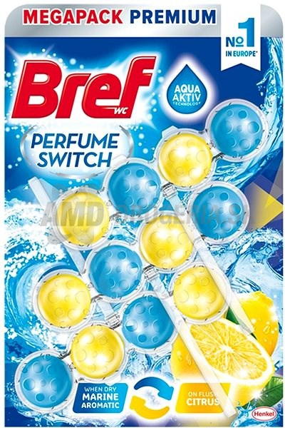 Inovácia od značky Bref. Technológia Aqua Aktiv dovoľuje umiestniť do WC bloku dva typy vôní. - Primárna vôňa sa uvoľňuje len keď je WC blok suchý. - Sekundárna vôňa sa začne uvoľňovať pri každom spláchnutí.
