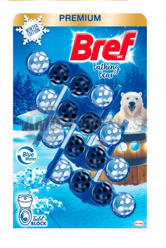 Tuhý WC blok od značky Bref Premium Color Aktiv+ Bathing Bear sa postará o hygienickú čistotu, ochráni vašu toaletu pred vodným kameňom a dodá extra sviežosť s čistiacou penou, ktorá zavŕši dokonalú čistotu. Vďaka účinným látkam obsiahnutým v modrej vode a technológií Odor stop zaistí dokonalú čistotu aj medzi spláchnutiami. Vyskúšajte limitovanú zimnú edíciu Bathing Bear Bref Color Aktiv+ pre viac lesku a žiarivejšiu čistotu vášho WC.
