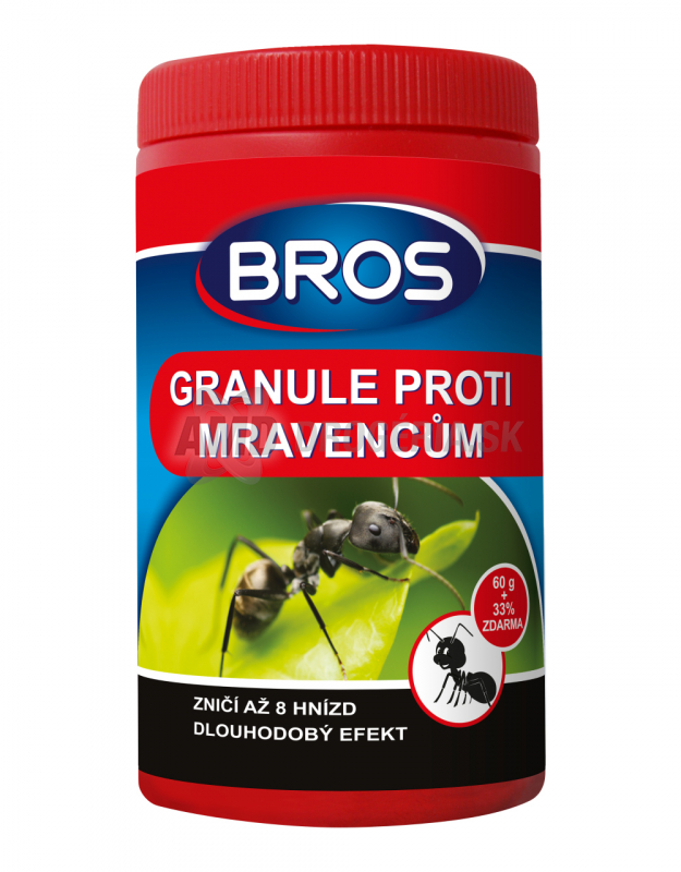 BROS GRANULE proti mravcom je určený pre vnútorné priestory a tesné okolie domov: terasy, garáže, príjazdové cesty, záhradné chatky a pod. Prášok zničí až 10 hniezd.