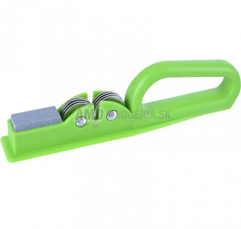 Pri častom používaní oceľových alebo kovových nožov s titánovým povrchom dochádza časom k ich otupeniu, najmä ak sú uložené voľne v zásuvke namiesto stojana či magnetickej lišty. Táto praktická brúska s kovovými brúsnymi kotúčikmi a brúsnym kameňom je určená na obnovu ostrosti tupých kovových nožov s hladkým, nie zúbkovaným ostrím, a zároveň umožňuje ich presné dobrusovanie.