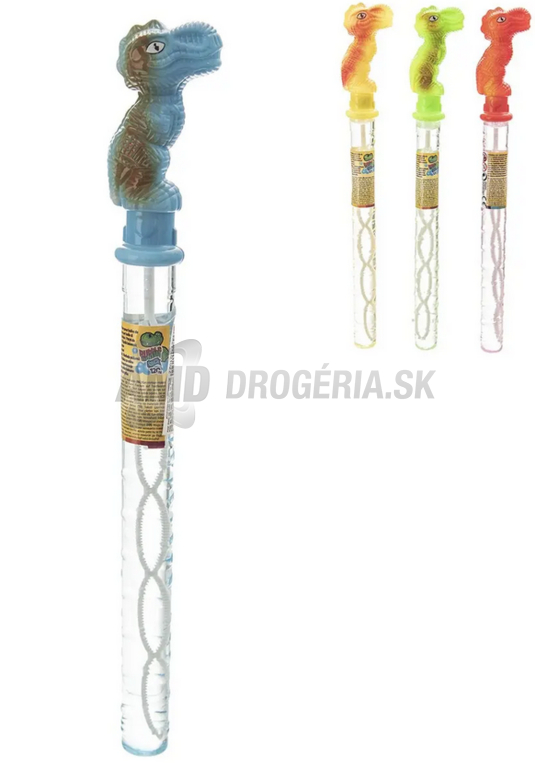 Bublifukové tyčinky v tvare dinosaurov pre deti! Fúkajú veľa bublín. Set 4 farieb (modrá, žltá, zelená, oranžová) s roztokom. Zábava na záhrade či párty pre deti od 3 rokov.