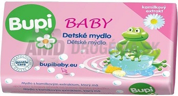 Bupi Baby Mydlo 100gMimoriadne kvalitné detské mydlo, ktoré obsahuje kamilkový extrakt. Má upokojujúci a hojivý účinok na citlivú a jemnú detskú pokožku.