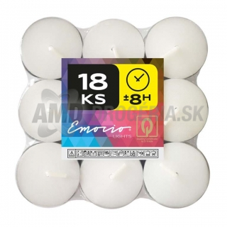 Klasické čajové sviečky vhodné do svietnikov či aromalámp . Balenie po 18 kusoch. Jedna sviečka horí približne 8 hodín. Sviečky obsahujú parafín najvyššej kvality.