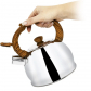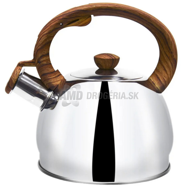 Moderný čajník s plastovými prvkami v dekore dreva a odklápacou píšťalkou, ktorá ohlási hotovú vriacu vodu. Rovné dno rýchlo rozvádza teplo pre ohrev na čaj či kávu na všetkých sporákoch vrátane indukcie.Úžitkový objem 1,5 l s širokým otvorom pre pohodlné plnenie – jednoducho sňatie nerezového viečka s plastovým úchytom. Praktická nylonová rukoväť uľahčuje manipuláciu pri plnení a vylievaní.