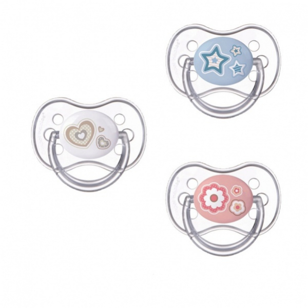 Silikónový cumlík s gumičkou okrúhleho tvaru, priehľadné z kolekcie Newborn.