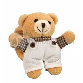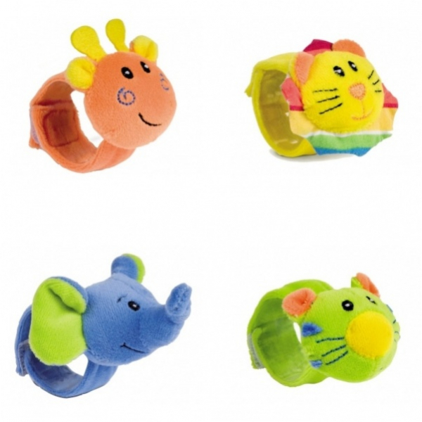 Plyšová hrkálka sa zapína na ručičku dieťaťa pomocou suchého zipsu.