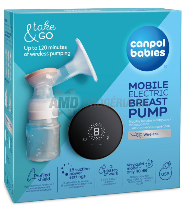 CANPOL BABIES PRENOSNÁ ELEKTRICKÁ ODSÁVAČKA MATERSKÉHO MLIEKA TAKE&GO