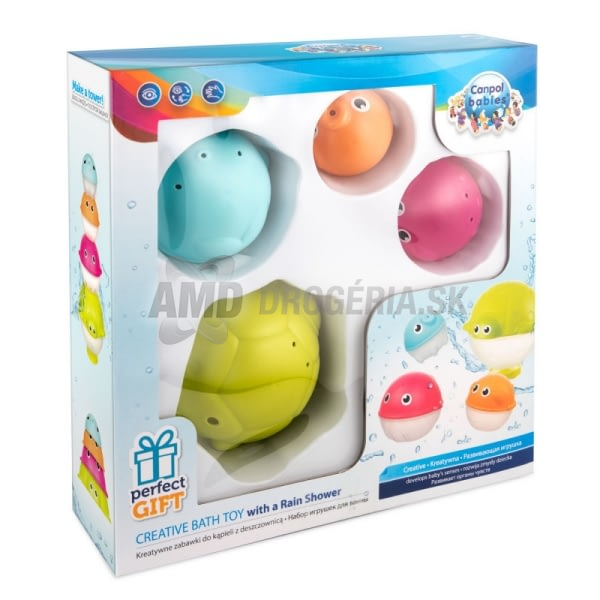 Kreatívna sada hračiek s dažďovou sprchou od Canpol babies, s ktorou dieťa zažije pri kúpaní veľa zábavy! Interaktívne prvky podporujú chuť dieťaťa poznávať, učiť sa a vymýšľať nové zábavné hry vo vode. Sada so zvieratkami OCEÁN je určená pre deti od 1 roka a neobsahuje BPA. Legrace vo vode môže začať! Perfektné ako darček! Všetky zvieratká sú zabalené v darčekovej krabici. Aktívne zábava - zvýšia atraktivitu každodenné kúpeľa vášho dieťaťa. Veselá zvieratká - podporujú chuť dieťaťa poznávať, učiť sa a vymýšľať nové zábavné hry vo vode. Stimulujú rozvoj zraku a hmatu. Dažďová sprcha - otvory rôznych veľkostí vytvárajú dážď a povzbudzujú tak dieťa k zábave. Kompaktný - ideálne pre zábavu doma i na cestách vďaka možnosti uloženie všetkých hračiek do jednej. Produkt je vyrobený z bezpečných, hygienicky nezávadných materiálov, ktoré sa ľahko udržujú v čistote. Návod na použitie: Udržujte v čistote, príležitostne pretrite vlhkou handričkou alebo hubkou. Nevyvárajte, nesterilizujte. Upozornenie! Dôležité pre zdravie a bezpečnosť vášho dieťaťa! Pred každým použitím výrobok dôkladne skontrolujte. Pri prvých známkach poškodenia alebo opotrebovania výrobok ihneď vyhoďte, už ďalej nepoužívajte alebo ho vymeňte za nový. Produkt je navrhnutý a schválený v EÚ: Smernica Európskeho parlamentu a Rady 2009/48 / ES o bezpečnosti hračiek. EN 71 - 1 Bezpečnosť hračiek - Časť 1: Mechanické a fyzikálne vlastnosti. EN 71 - 2 Bezpečnosť hračiek - Časť 2: Horľavosť. EN 71 - 3 Bezpečnosť hračiek - Časť 3: Migrácia určitých prvkov. ISO 9001 ISO 22716