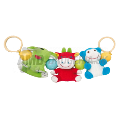 Hrkálka do kočíka je určená najmenším deťom, ktoré sa ešte samé nepohybujú. Atraktívne tvary a intenzívne farby upútajú pozornosť dieťaťa. Umývajte kefkou v teplej vode prípravkom určeným deťom, príležitostne prelejte vriacou vodou.