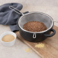 Jemné nerezové sitko s veľkosť oka 0,45 x 0,45 mm uľahčí cedenie cestovín, preplachovanie strukovín, húb, ovocia či zeleniny. Hodí sa aj na sparovanie jemných obilnín ako amarant, pšeno, quinoa alebo pohánka. Využijete ho na preosievanie múky či práškového cukru, cedenie kompótov, domácich štiav a likérov. Predné zarážky umožňujú jednoduché uchytenie na okraj misy alebo hrnca, dlhá rukoväť zaisťuje pohodlnú manipuláciu a zavesenie na háčik. Vyrobené z kvalitnej ocele, vhodné do umývačky riadu.