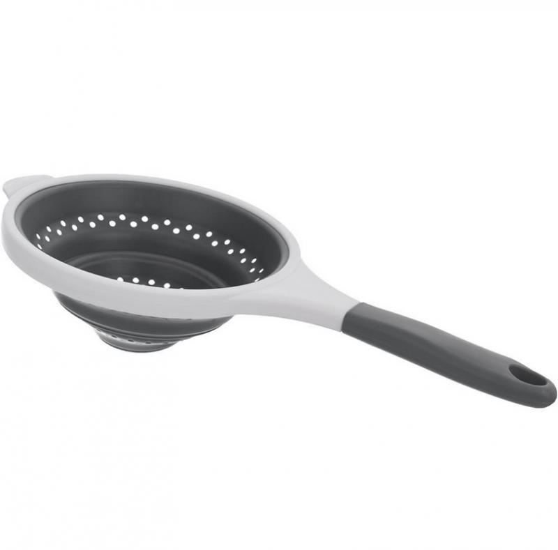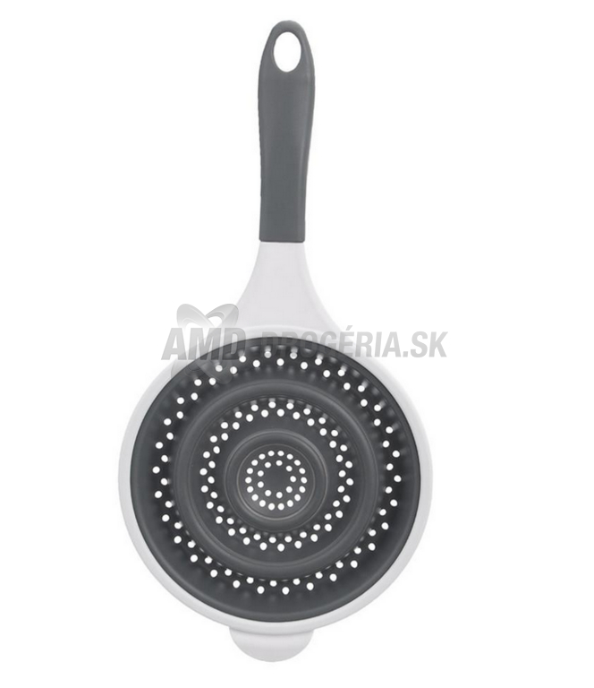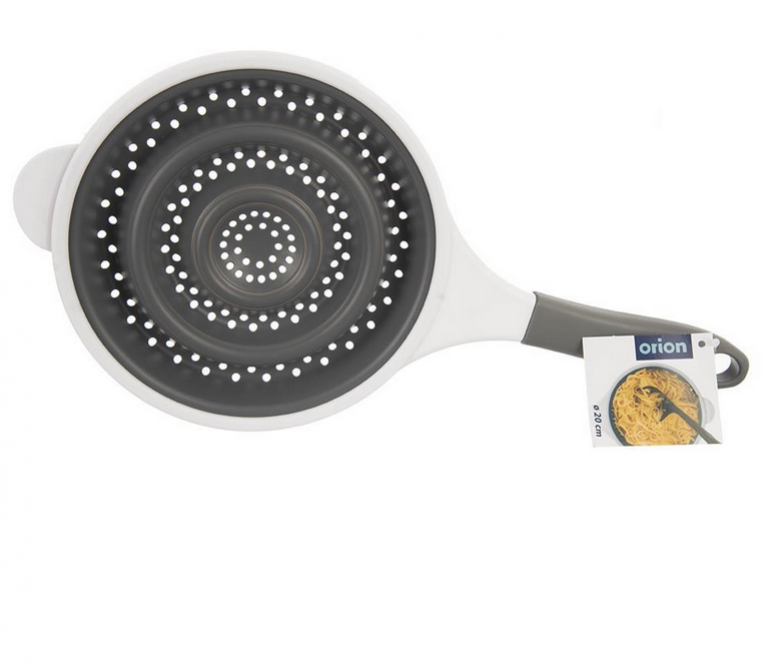 Skladacie silikónové sitko je univerzálny pomocník na cedenie rôznych potravín v kuchyni. Kľúčovou výhodou je tvarovateľná cediaca časť – pri ukladaní ju zatlačíte a ušetríte cenné miesto. Ideálne do karavanov, na kemping či chatu. Vyrobené z kvalitného silikónu a plastu PP, odolá teplotám až do 100 °C, s možnosťou zavesenia. Rozmery: dĺžka s rukoväťou 41 cm, priemer 20 cm. Plne vhodné do umývačky riadu.