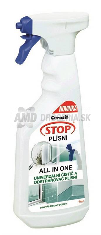 VÝHODY CERESIT STOP VLHKOSTIOdstraňuje nečistoty, plesne a baktérieDezinfikujePoužiteľný na steny, obklady a dlažby, škáry, tehlové stenyKompatibilný s väčšinou maliarskych farieb500 ml nádoba s praktickým rozprašovačom na okamžité použitieCERESIT STOP PLESNI EFEKTÍVNE PÔSOBÍ PROTINečistotámPlesniamBaktériámMachom a riasam v interiériAKO PRÍPRAVOK POUŽÍVAŤ?Ceresit STOP PLESNI je pripravený na okamžité použitie vďaka nádobe s rozprašovačom.Prípravok nastriekajte na povrch (zo vzdialenosti 3-5 cm), počkajte 5-10 minút a pomocou handričky alebo kefky pleseň zotrite. Ak je potrebné aplikáciu zopakujte. Zvyšky prostriedku opláchnite vodou (okrem stien a múrov).Ak prípravok používate na steny, ich premaľovanie alebo tapetovanie je možné hneď po zaschnutí prípravku.