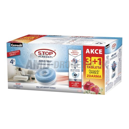 CERESIT Stop Vlhkosti AERO 360o náhradné tablety. Balenie obsahuje 3x náhradné tablety + 1x náhradné tabletu.