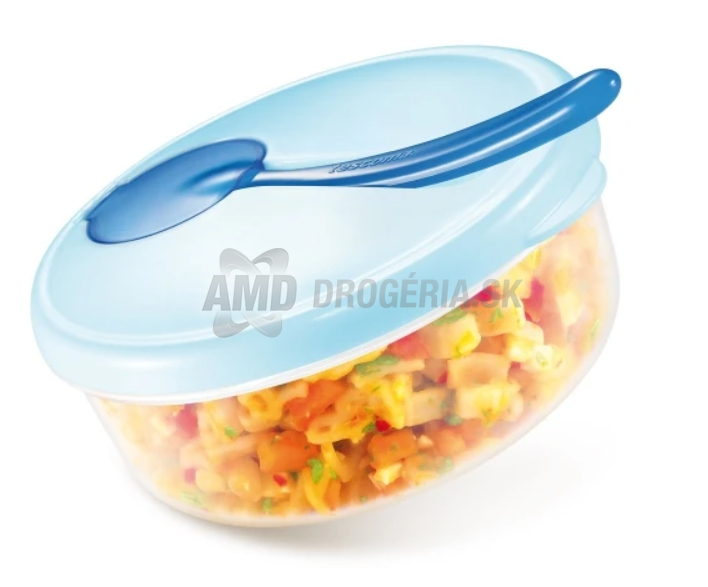 Cestovná miska PAPU PAPI, modrá, s priloženou lžičkou je výborným riešením na podávanie detských pokrmov pri cestovaní. Táto miska je vybavená lžičkou, ktorá je hygienicky uložená vo viečku, čo poskytujete cestovanie s malými deťmi.