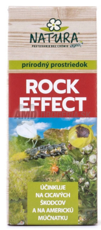 Agro NATURA Rock Effect je unikátny koncentrát na báze prírodných látok určený na zvýšenie odolnosti a obranyschopnosti rastlín proti škodcom. Účinkuje na vošky, molice, roztočov, strapky, červce, puklice (v ranom štádiu) a americkú múčnatku na egreši a ríbezliach. Je účinný aj proti škodcom na okrasných rastlinách, bylinkách, paprikách, paradajkách, uhorkách, tekviciach (cuketách), jadrovinách, kôstkovinách, ihličnatých drevinách a chmeli. Obsahuje pongamový olej z opadavého stromu Pongamia pinnata z Indie a je vhodný pre ekologické poľnohospodárstvo.