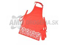 bavlnená kuchynská detská chňapka rozmer 10x22cm a zástera 50x70cm, ludovy motiv, farba: červená