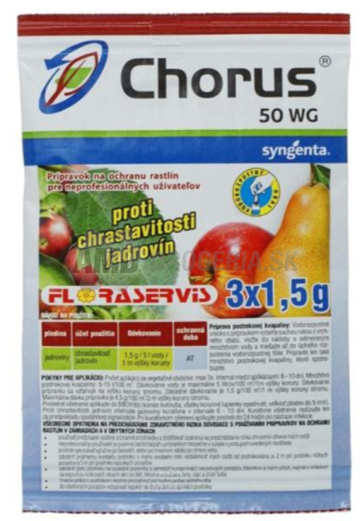 Chorus 50 WG je postrekový fungicídny prípravok určený na ochranu jadrovín pred chrastavitostou. Obsahuje účinnú látku Cyprodinil v koncentrácii 500 g/kg a pôsobí systémovo.