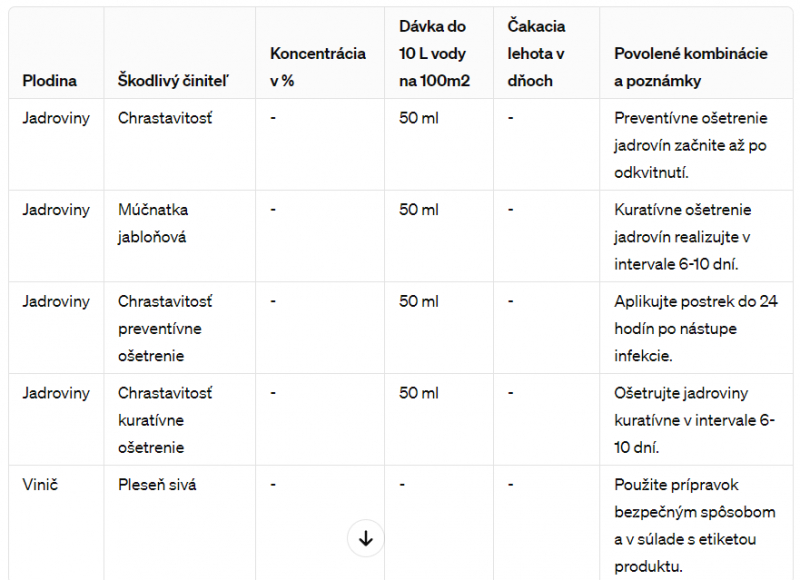 Tento prípravok je efektívny nielen proti chrastavitosti jadrovín, ale tiež má vedľajšiu účinnosť proti monilióze, alternáriovým škvrnitostiam a múčnatke.